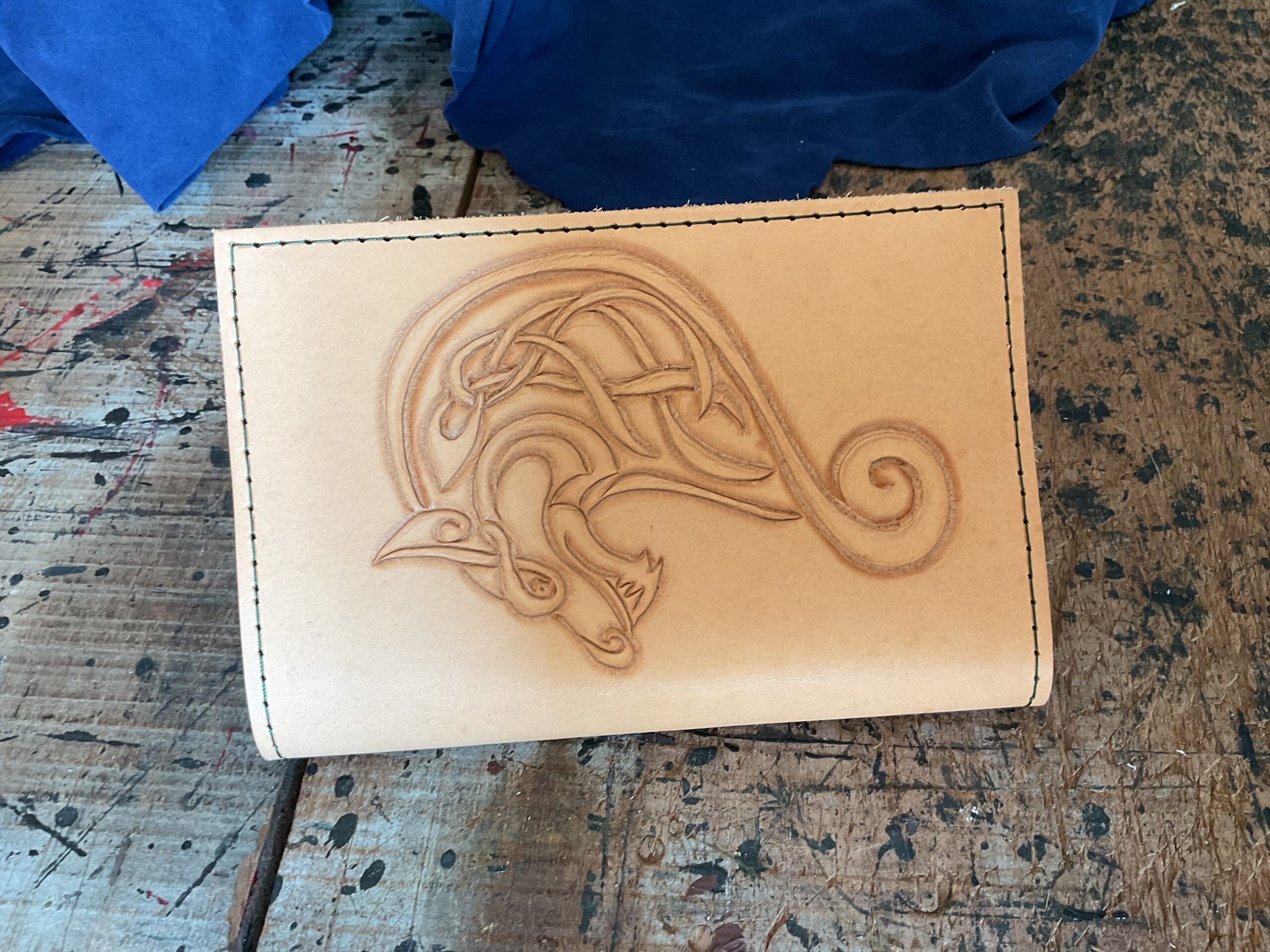 En cuir de vache à tannage végétal. Repoussé à la main.
